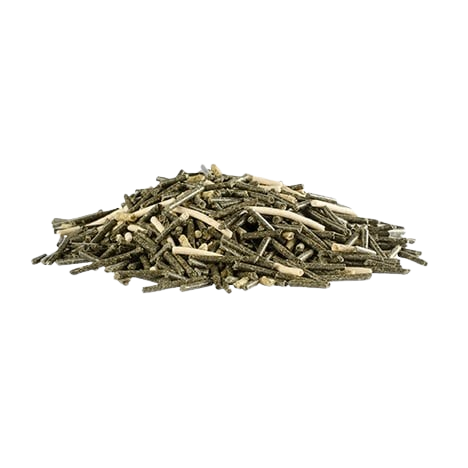Lucerna, mączka żytnia, koncentrat białka sojowego bez GMO, drożdże, płatki sojowe bez GMO, węglan wapnia, olej lniany, dekstroza, pozostałości cytrusów
