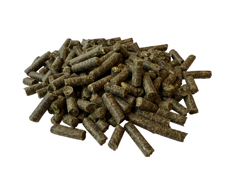 Lucerna, otręby ryżowe (poddawane obróbce hydrotermicznej pod ciśnieniem), makuch lniany, drożdże piwne, olej lniany, węglan wapnia, tlenek magnezu